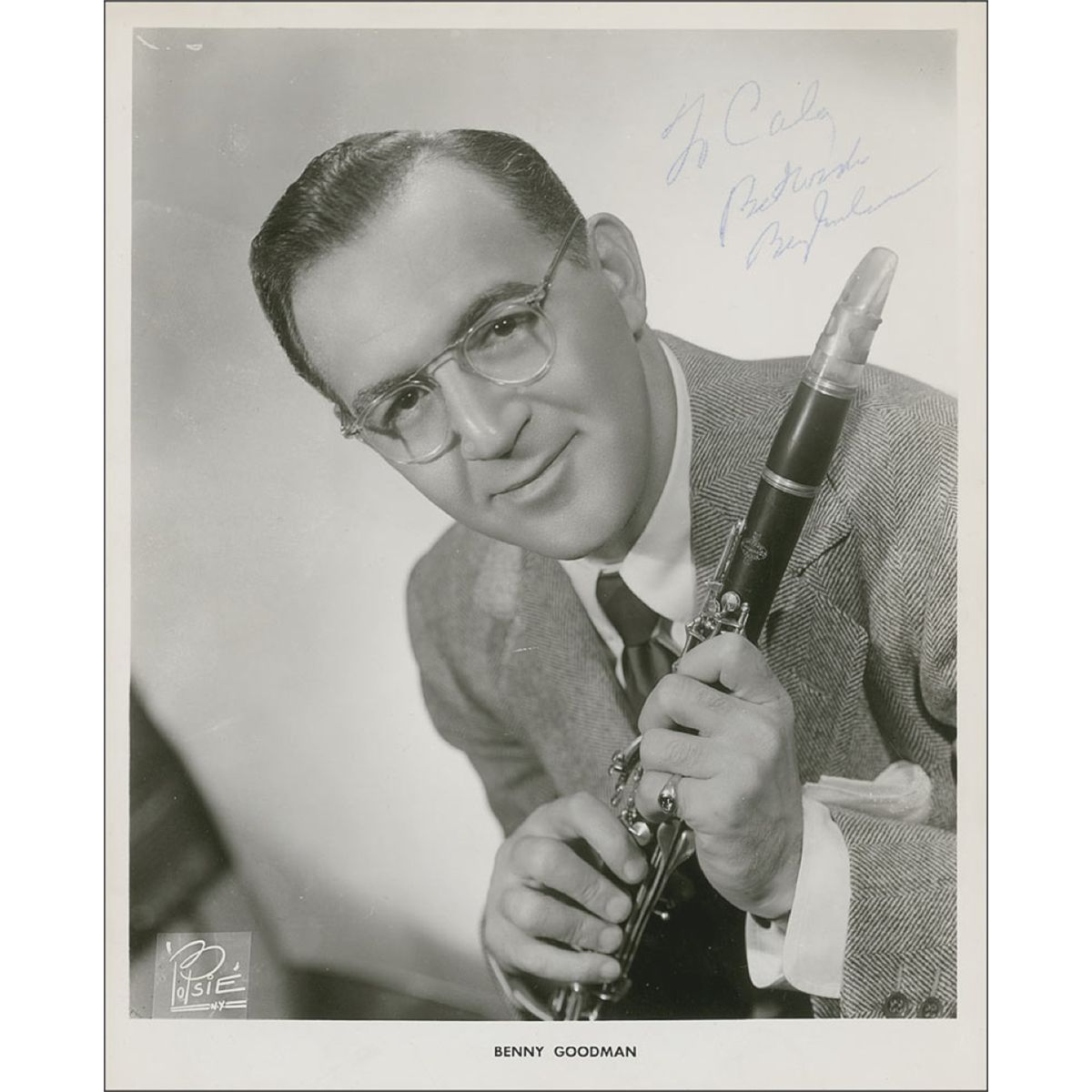 Benny Goodman 8'' x 10'' Glossy Signed Photo -- ''To Caly / Best wishes / Benny Goodman'' -- Very Good