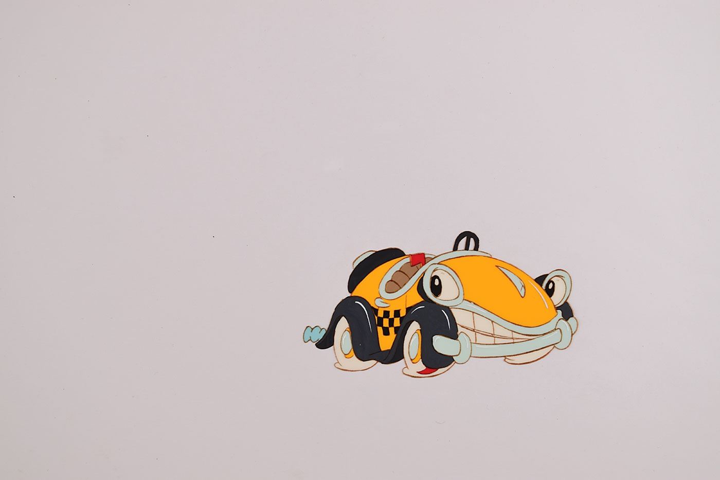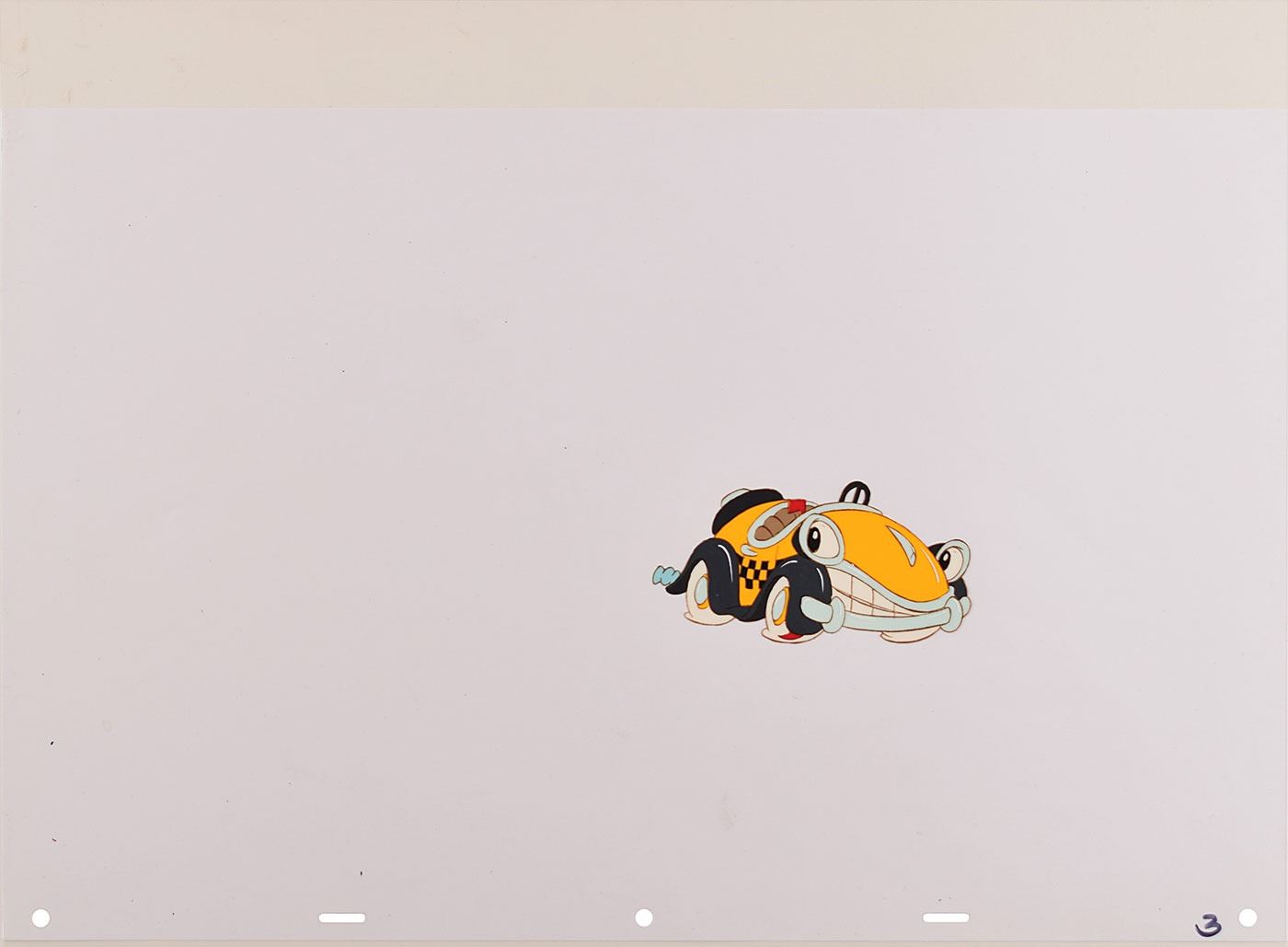 (Walt Disney Studios, 1988) Original production cel of Benny the Cab from Who Framed Roger Rabbit. Character image measures 4.25 x 2, with overall dimensions of 17 x 12.5; the cel is marked "3" in the lower right corner. In fine condition. An uncommon character from Disney's groundbreaking live-action/animated blockbuster—Who Framed Roger Rabbit received Academy Awards for Best Film Editing, Best Sound Effects Editing, and Best Visual Effects, in addition to receiving a Special Achievement Academy Award for its animation direction by Canadian animator Richard Williams.