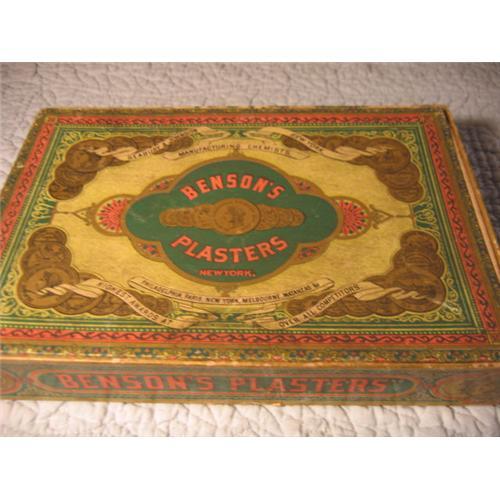 <tr><td>Title:Benson's Plasters 1880s Paper Lithograph Box</td></tr>