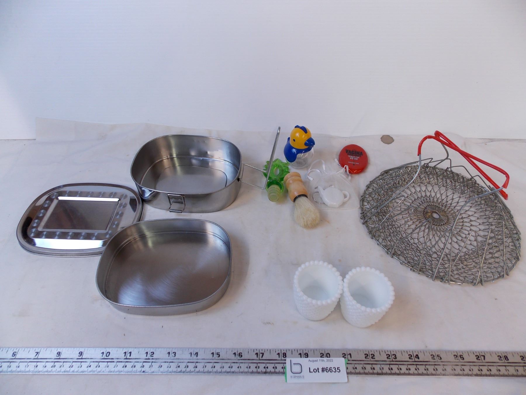 Bento Box Lunch Tin, (2) Votive Holders, Collinder and Assorted Items