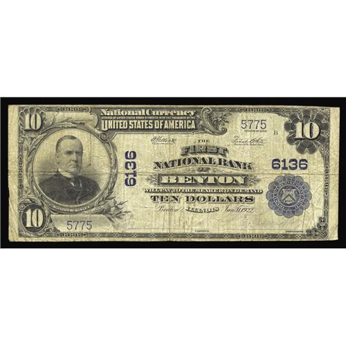 <B>Benton, IL</B></I> - $10 1902 Plain Back Fr. 634 <B>The First NB</B></I> Ch. # 6136<BR>This is one of the so-called "Fourth Charter" notes, with this example bearing the 1922 plate date. <B>About Fine.</B></I>