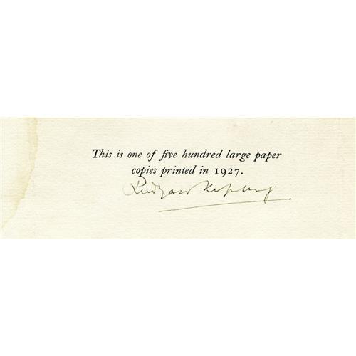 <B>Beowulf <I>Limited Edition Illustrated by Rockwell Kent</B></I></B></I> (New York: Random House, 1932), limited to 950 copies, 146 pages, folio (10.5" x 13.5"), set by hand, bound in cloth with white printed decoration, 8 black and white full-page lithographs by Rockwell Kent. This is the thumbprint edition of this book in which Kent has substituted his thumbprint on the colophon page for his signature. The word "<I>Review</B></I>" appears in the location designated for indicating the number of the limited copy, thus this was likely a review copy. The book is in very good condition with some darkening to spine and fraying to the head and foot of the spine.