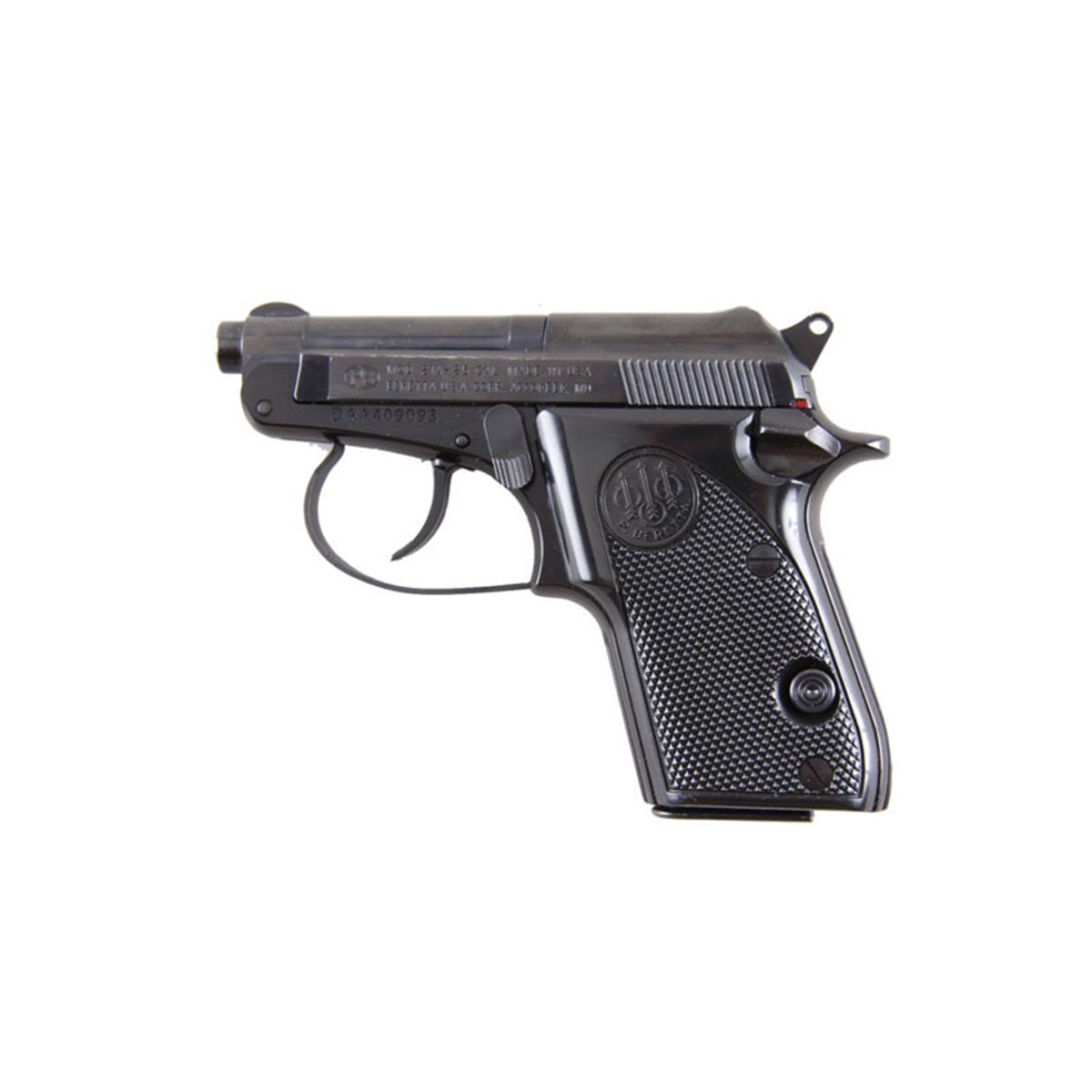 Beretta 21A Bobcat Cal .25acp SN:DAA409093 Double action semi-auto 8 shot pocket pistol made in U.S.A. Blued finish with black plastic checkered grips, 2.4" tip up barrel with fixed sights, good bore and action. Included in blue box with instructions anDouble action semi-auto 8 shot pocket pistol made in U.S.A. Blued finish with black plastic checkered grips, 2.4" tip up barrel with fixed sights, good bore and action. Included in blue box with instructions andgun lock. Condition: Near new with no sign of use. 1 magazine. 'NOT CALIFORNIA LEGAL"