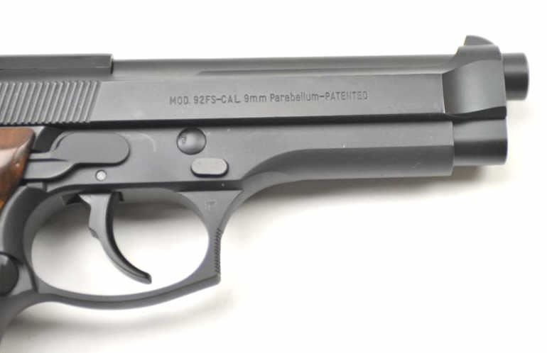 Beretta 92FS DA semi-automatic pistol, 9mm caliber, Serial #BER214002Z. The pistol is as new in the factory plastic case with a 4.9” barrel. The pistol retains approximately 98-99% blue finish with lighthandling marks. The checkered wood medallion grips are in excellent condition, showing little use. The bore is good and the action is crisp. The lot includes two factory hi-cap magazines (Not available to California residents or where restricted). Est.: $600-$1,200. (Modern/PPT).
