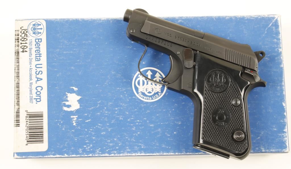 Matte blued single-action semi-automatic pistol with a 2-7/16" barrel, one magazine, plastic grips, factory box numbered to the gun and warranty information. Metal finish is flawless. Bore is mirror bright with sharp rifling. Action works well. Plastic grips have a few small scratches. Cardboard box has edge wear and a spot on the lid that had something adhesive on it. Condition is impeccable. *Modern Firearm*