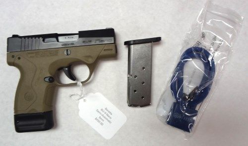 Beretta BU-9 Nano Semi-Auto Pistol 9MM. Finish- Black, Action- Double Action Only, Stock- Flat Dark Earth Frame withTextured Front Strap, Capacity- 8+1 & 6+1, # of Mags- 2 (1-8 Round and 1-6 Round), Sights- FT: Ramp RR: Adjustable for Windage, Barrel Length- 3.07", Overall Length- 5.63", Weight- 17.67 oz, Features- Reversible Mag Release, Pronox Finish on Slide, Receiver- Fiberglass Reinforced Technopolymer. Comes with a lifetime Guarantee. Est 450.00-500.00