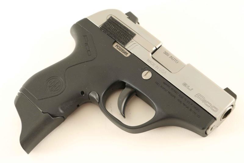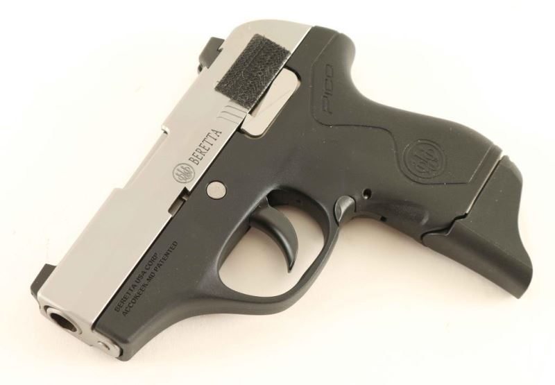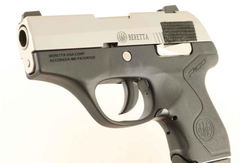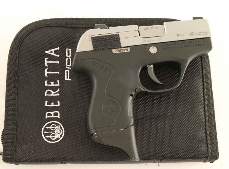 American made double-action-only semi automatic sub-compact pistol rated for .380 +P ammo. The Pico was built for concealed carry, it's 18mm narrow profile makes it is the thinnest semi-automatic .380 handgun on the market. Features a satin finished stainless steel slide with snag-free lines & added Velcro strips for a positive grip, 2.7" barrel, user-removable three dot sights with drift adjustable rear sight, smooth trigger, bobbed hammer, low-profile slide release lever, ambidextrous paddle-style magazine release, 6 round stainless steel magazine with finger rest floorplate, and interchangeable black polymer grip frame. Includes the original factory cardboard box with padded soft case, spare magazine, lock, and manual. Pistol shows only minor slide wear on the barrel with no other wear observed. Action is strong, bore is pristine and polymer is fine. Likely unfired. Condition is near NRA Perfect. ***Modern Firearm***