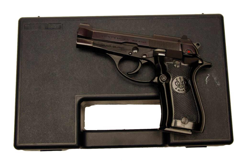 Beretta Mdl 84BB Cal .380 auto SN:D32480Y Double action small frame pistol imported from Germany. Blued finish, black plastic checkered grips, 3 3/4" barrel, good bore and action, 2 white dot sights. Condition: Excellent showing little sign of use. In dark blue carry case with cleaning brushes. 1 magazine.