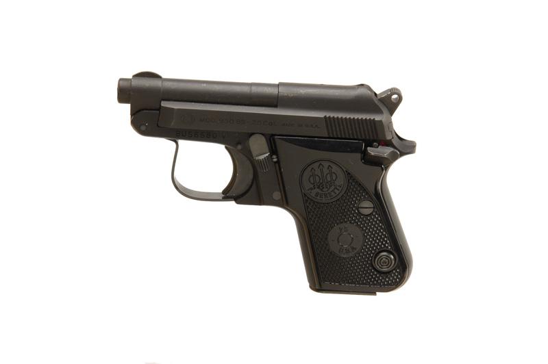 Beretta Mdl 950BS Cal .25acp SN:BU56580V Nice semi-auto pocket pistol. Blued finish, 2 1/2" tip up barrel with fixed sights, black plastic grips, good bore and action.