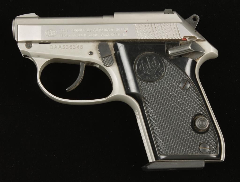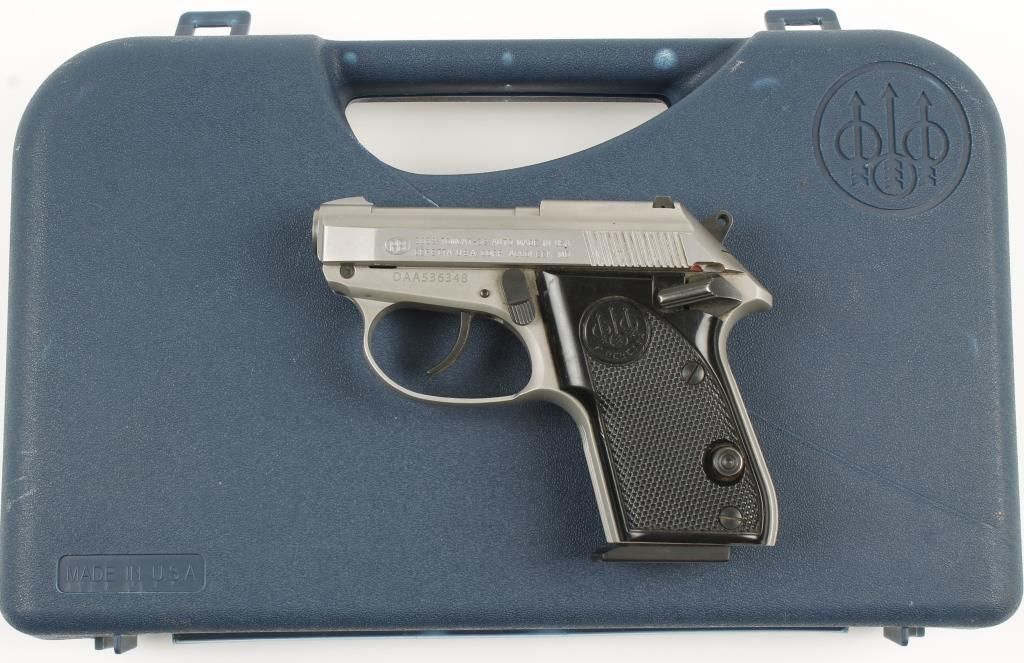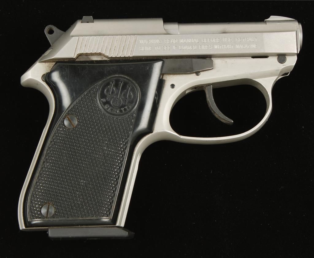 Italian made double action semi auto "Inox" model pistol with 2-1/2" barrel. Stainless steel, checkered black plastic grips, pop up barrel feature, thumb safety and fixed sights. Good bore and action. Includes original box, manual and 1 magazine. Condition: Good to very good showing use. *Modern Firearm*