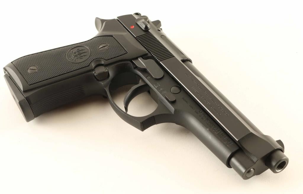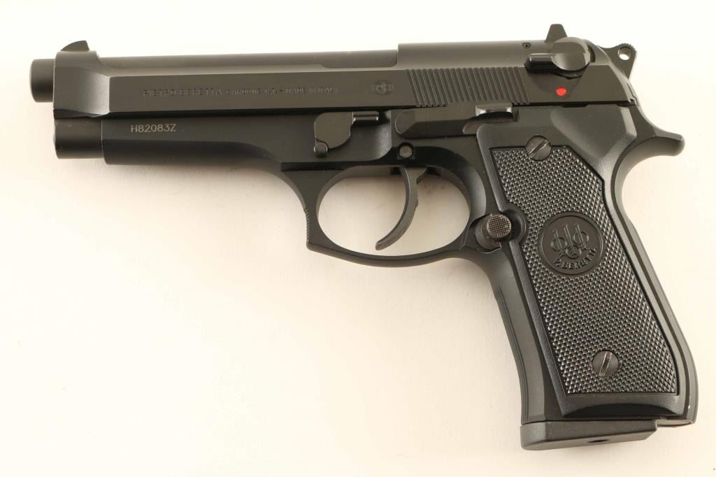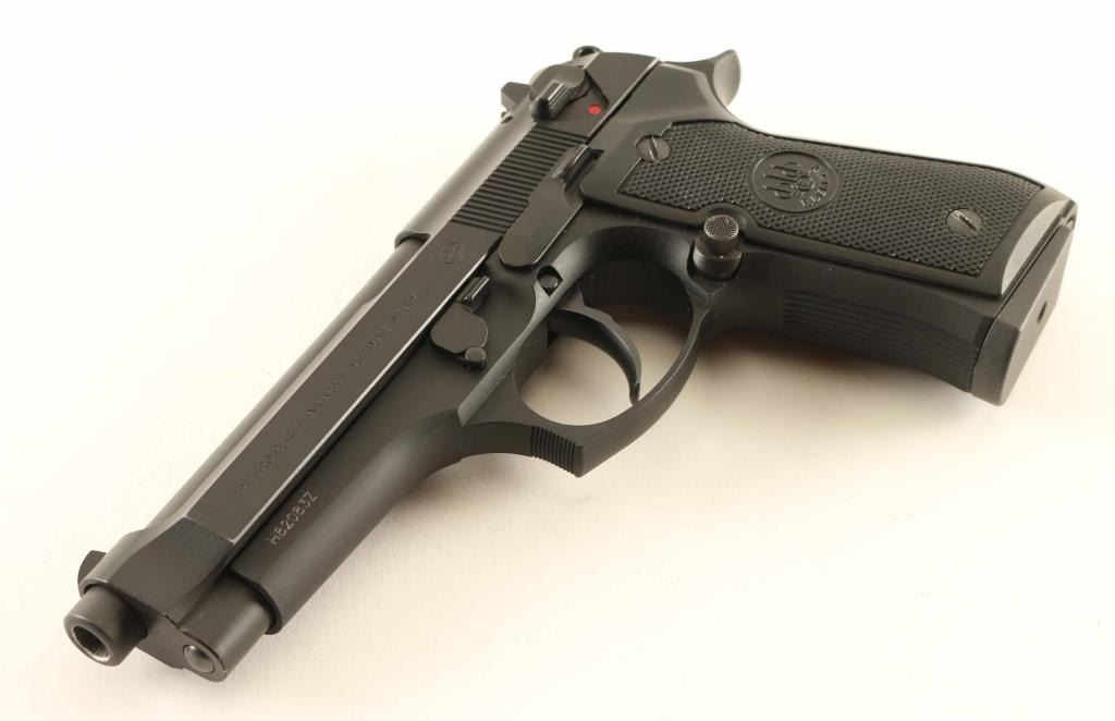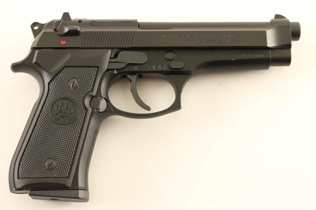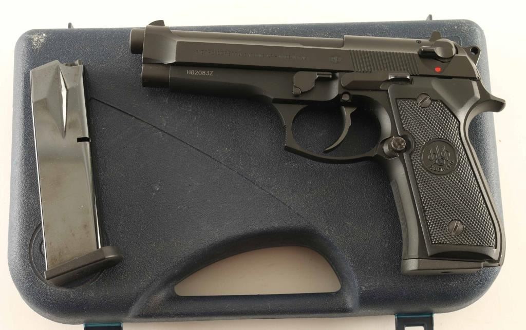Pistol, Semi-automatic. Made in Italy. Short recoil, double/single action. Side mounted safety/decocking lever. Blued finish, with checkered, black, plastic grips. Combat triggerguard. Fixed, open 3-dot sights. 4.9" barrel. Bore is excellent/bright. Metal finish is about 99%, with a couple of minor scratches. Grips are excellent. Action is smooth/tight. Comes with original blue plastic case, Also comes with one 10-rd 9x19( para) magazine, and one 17-rd 9MM magazine. NRA Condition-Near Excellent Modern Firearm.