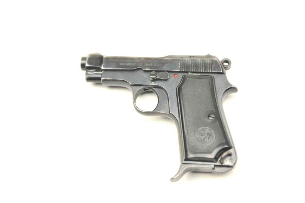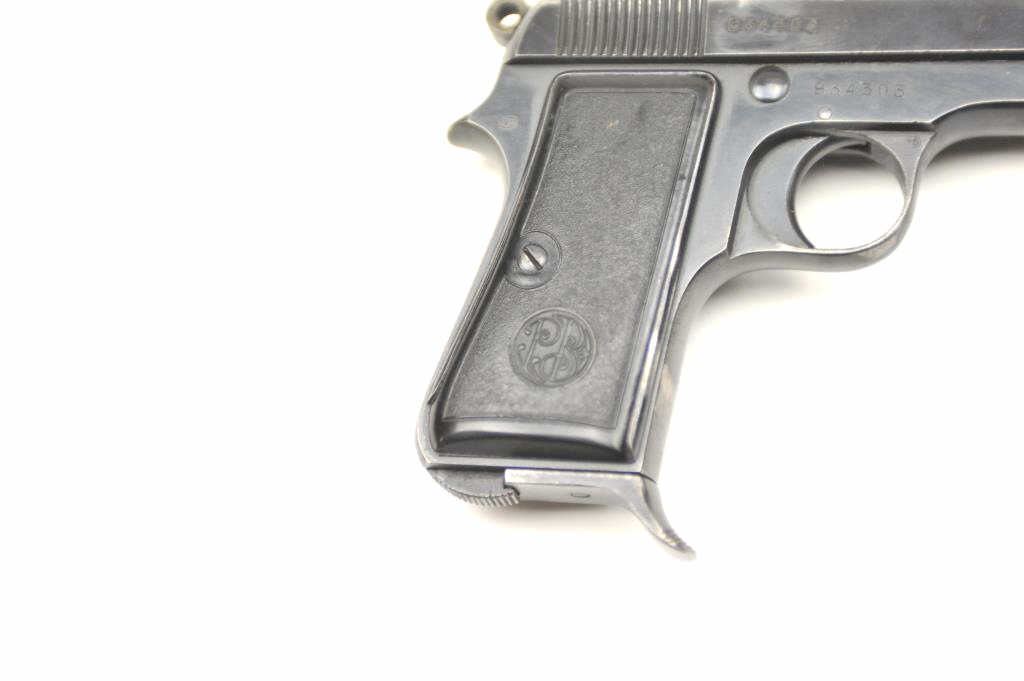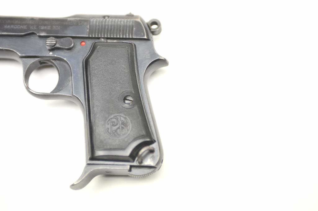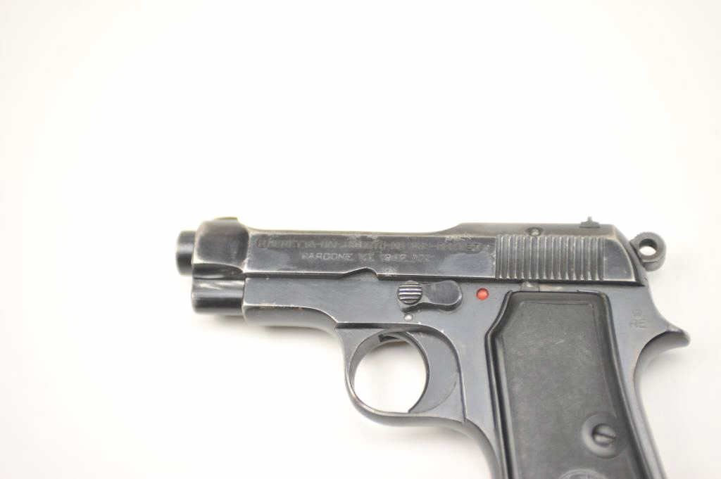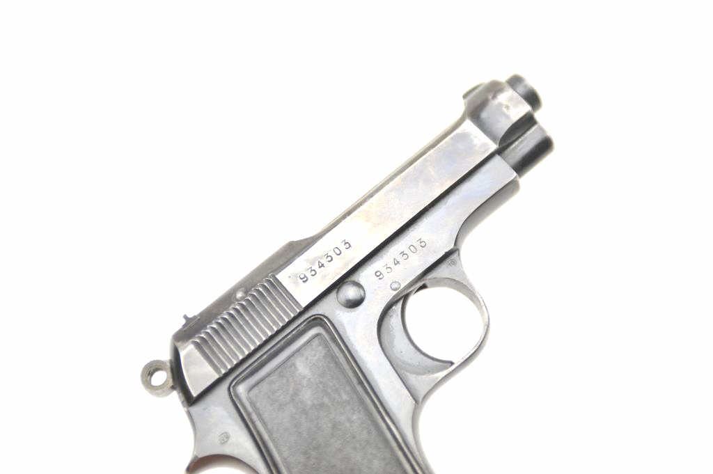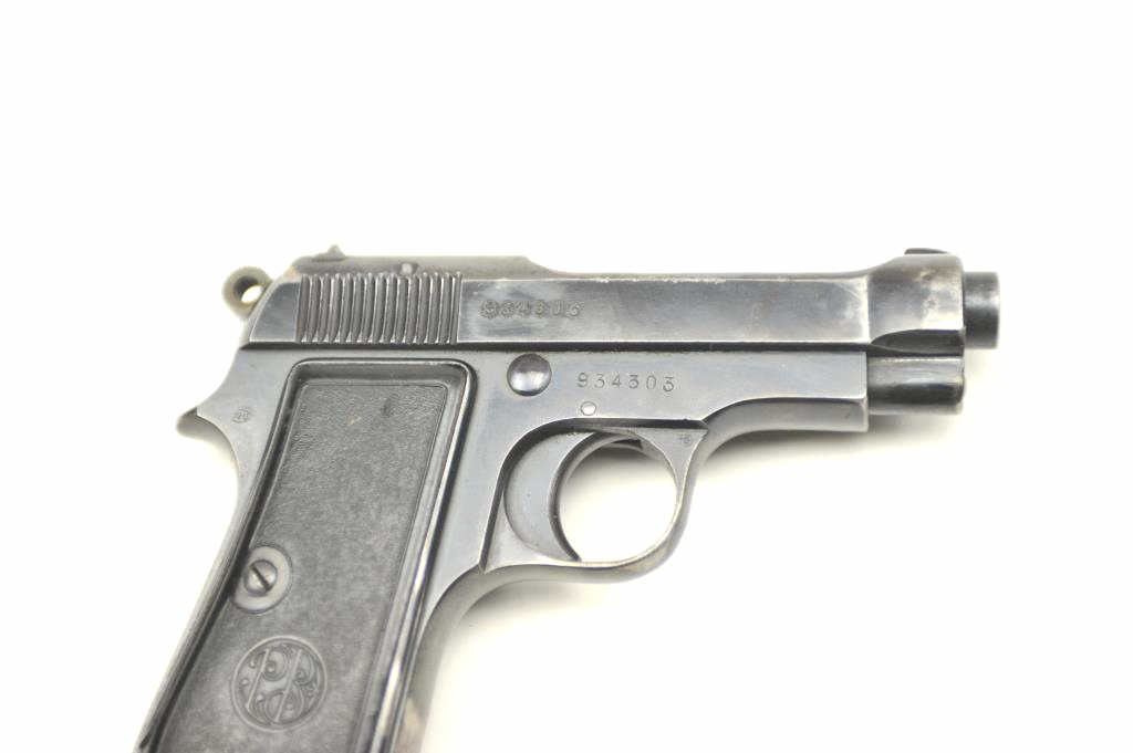Beretta Model 1934 Semi-Auto Pistol in .380 caliber and 1942 dated with “RE” and crown marking, S/N 934303. 75%-85% original blue remaining with near fine composite grips. Shows holster and edge wear with minorerosion. Very good overall with good bore showing some wear. (C&R/PPT) Est.: $350-$700