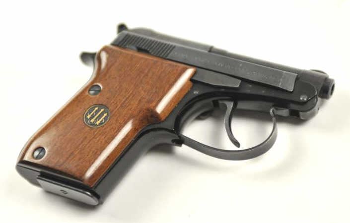 Beretta Model 21A semi-automatic pistol, .22 LR caliber, Serial #BAS06661U. The pistol is in fine to nearly excellent overall condition with a 2 ¼” barrel. The pistol retains 95-96% of the blue finish with somelight edge wear. The smooth wood medallion grips are in very good condition with small mars and abrasions. The pistol includes one correct magazine. The bore is good, the action crisp and the markings are sharp.Est.: $250-$500. (Modern/PPT).