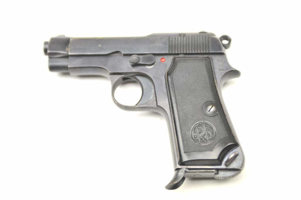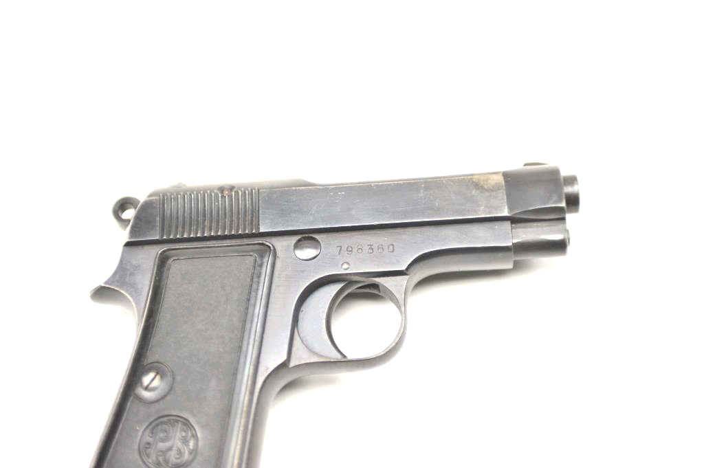 Beretta Model 35 in .32 ACP caliber marked “PSF” and 1952 dated with brown canvas holster and extra mag, S/N 798360. 85%-95%commercial quality blue finish with black composite grips. Excellent bore. Showsvery little firing or use. At this period of 1950’s Italy had a very small army and there are no import marks. Unusual and possibly military police issue. (C&R/PPT) Est.: $300-$600