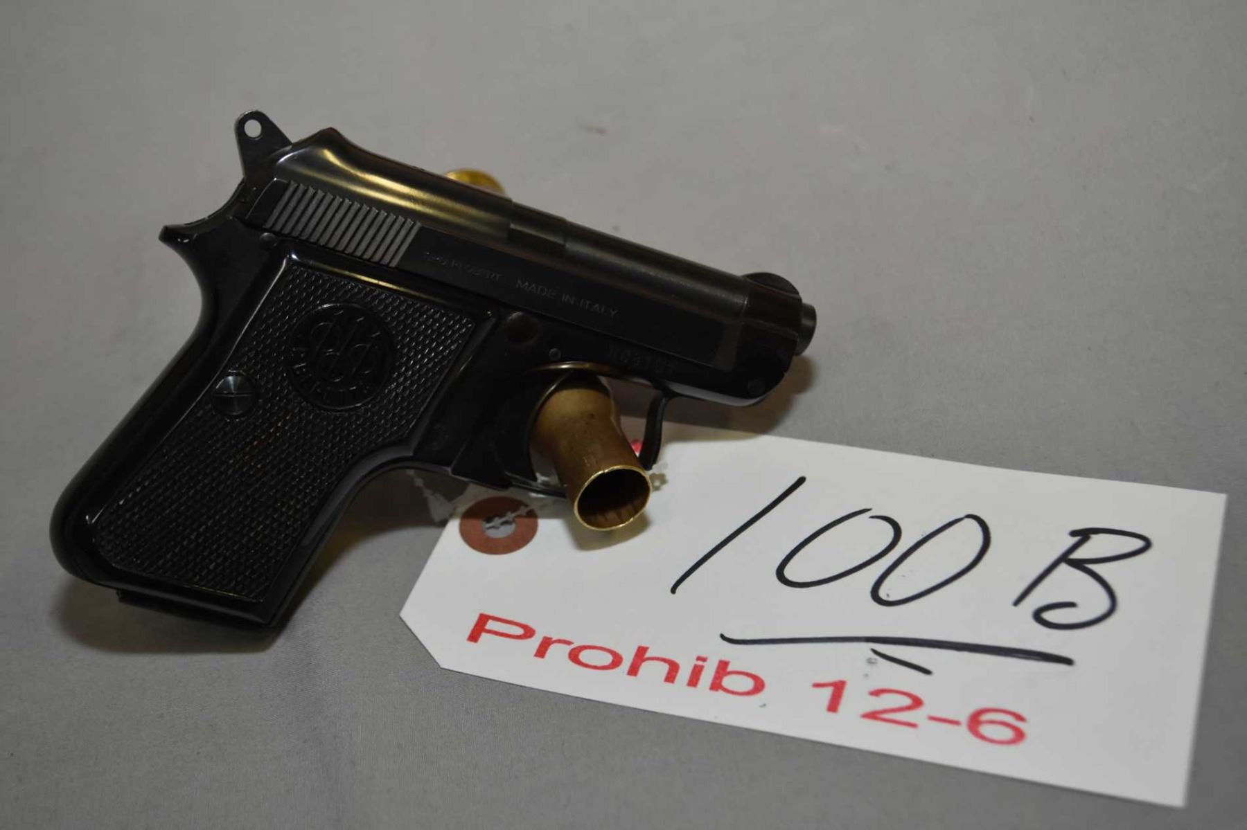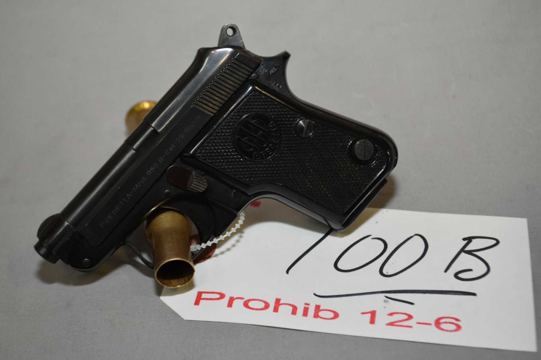 Beretta Model 950 B .22 Short Cal 6 Shot Semi Auto Pistol w/ 60 mm bbl [ blued finish, fixed sights, black checkered Beretta grips, appears excellent, few slight marks ] Ser # H08161 Prohib 12 - 6 Cert # 8822441 FRT # 16516 - 1 EXPECT DELAYS IN TRANSFER