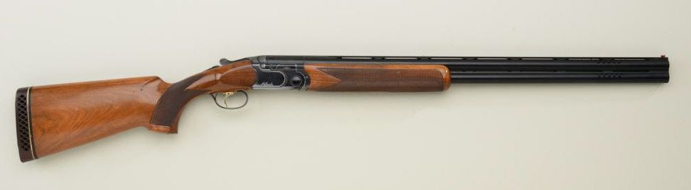 Beretta Model S-682 O/U four barrel set shotgun, auto ejector, single trigger, in heavy duty metal carry case, #E42747B. This set consists of primary 12 gauge, 2-3/4” chambers, 28” ventilated and ported barrels,fine bores, crisp action, majority of muted blue finish remaining with high point wear to receiver, very good wood stocks, White Line hard rubber butt pad; additional barrel sets are: 20 gauge, 2-3/4” chambers, 28” barrels, fine bores; 28 gauge, 2-3/4” chambers, 28” barrels, fine bores and 20 gauge, 2-3/4” chambers, 28” barrels with bores that should clean to fine; a beautiful Beretta set. Est.: $800-$1,600.