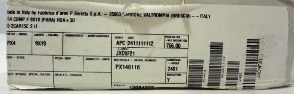 Beretta PX4 Storm Compact 9mm. Semi-Automatic pistol. Finish - Bruniton (Matte Black). Action - Double action. Stock - Black plastic Grips. Capacity - 15+1. Magazines - 2. Safety - Ambidextrous Safety/Decock Lever. Sights - Fixed 3 Dot Sights. Barrel Length - 3.2". Overall Length: 6.8". Weight - 27.3 oz. Features - Picatinny Accessory Rail. ***Comes with lifetime Guarantee***. EST $575- $625