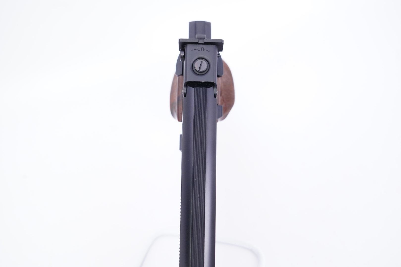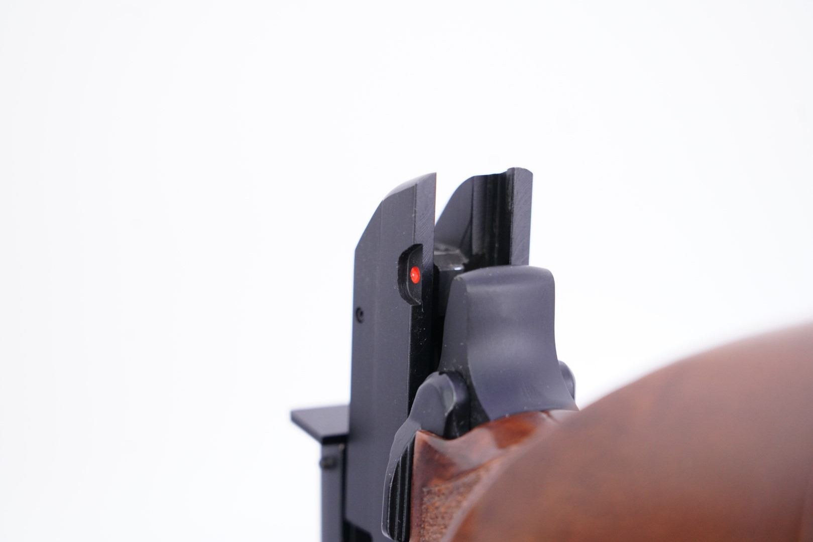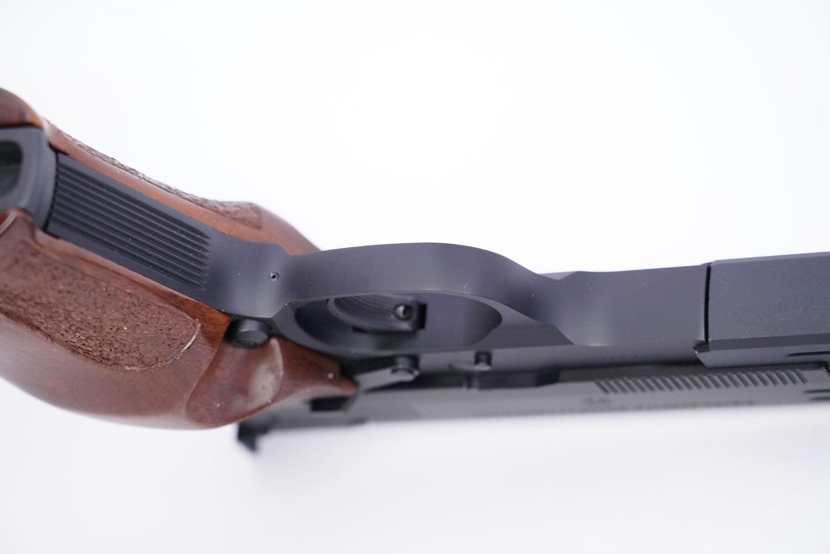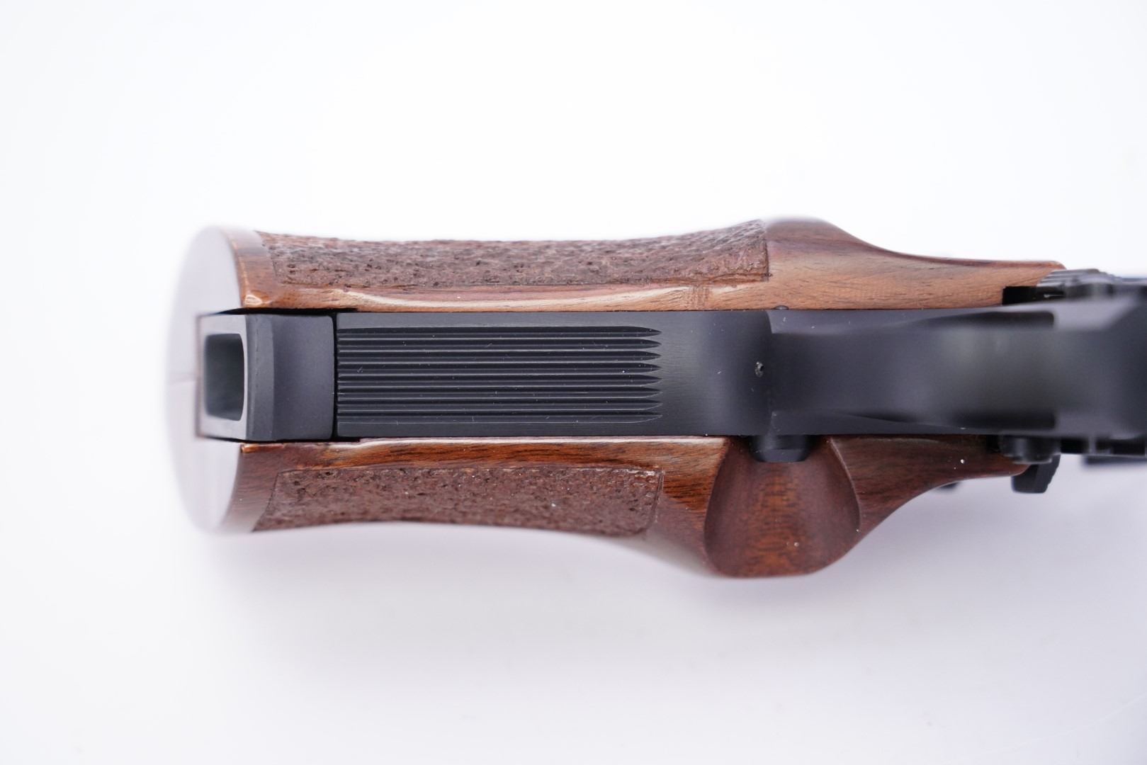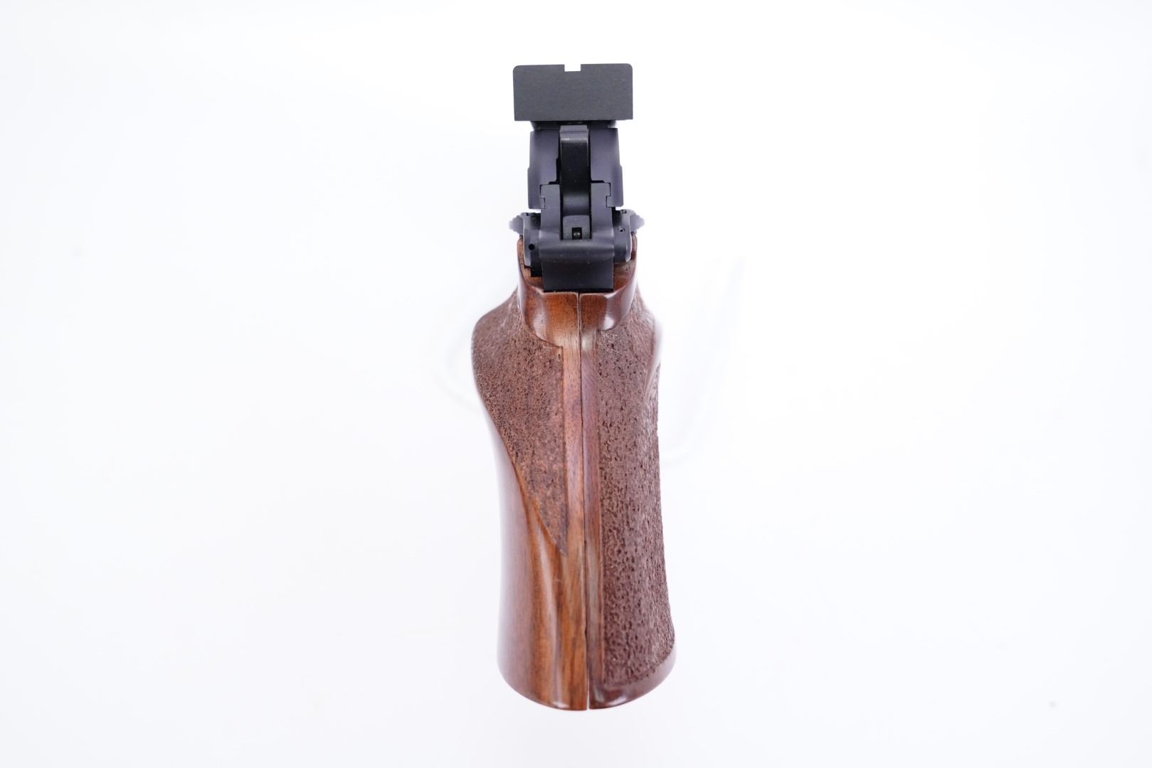 Stock Configuration & Condition/ Grip: The grip panels are two-piece stippled wood with a thumb rest on the left panel. The grip panels have some light handling marks but they lack any notable defects. There are no chips or cracks. Overall, the grip panels are in Excellent condition.