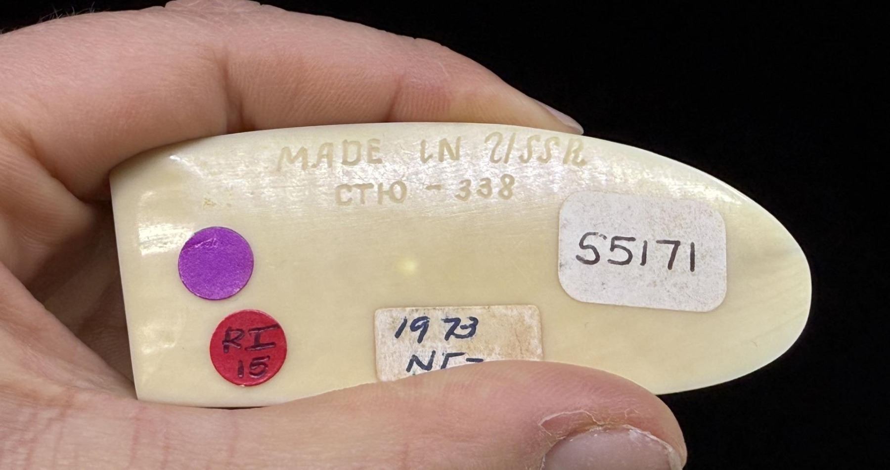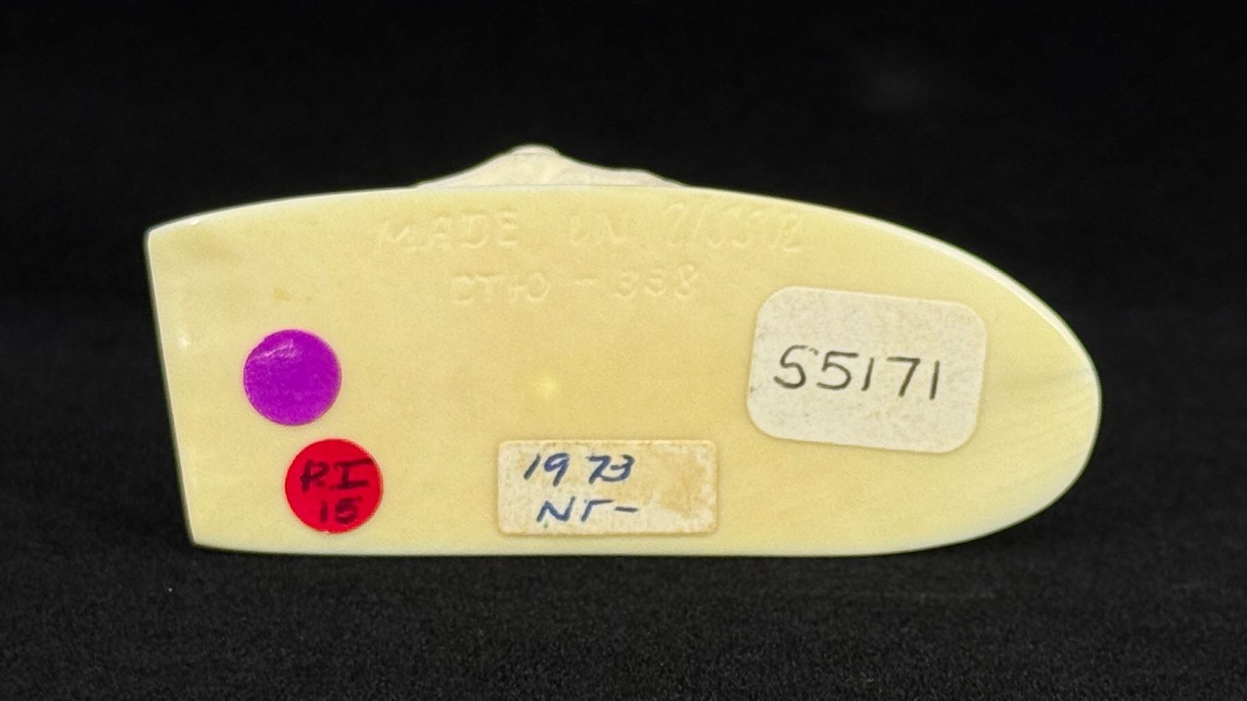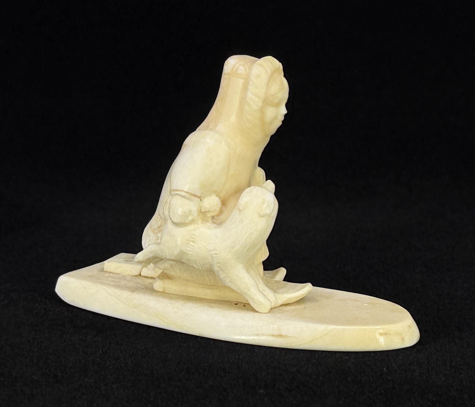 3" by 2" by 1 1/8". Carved Walrus Ivory. Native made prior to 1972. This item cannot be shipped to Oregon, California, Hawaii, New York, New Jersey, Internationally, or any other state that prohibits. Provenance: Heard Museum, Arizona; Private Collection, New York.