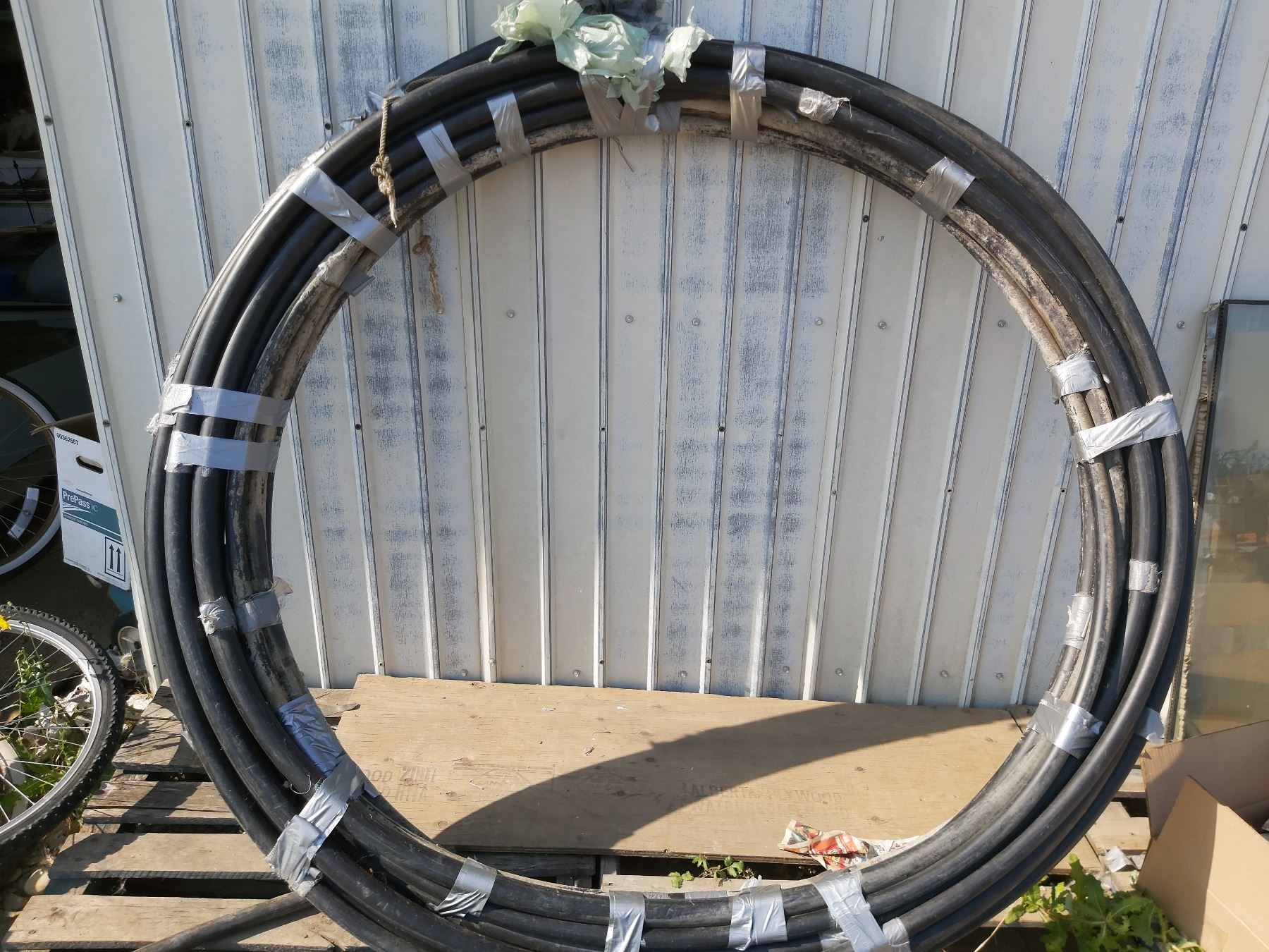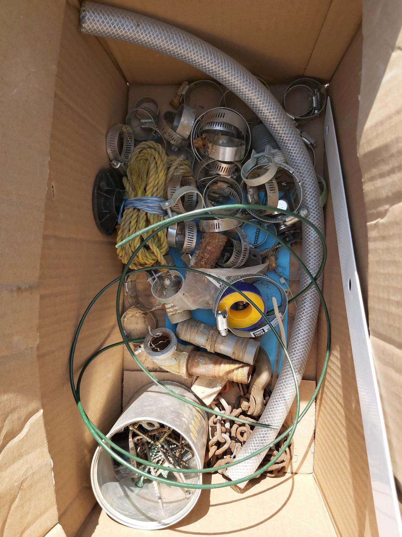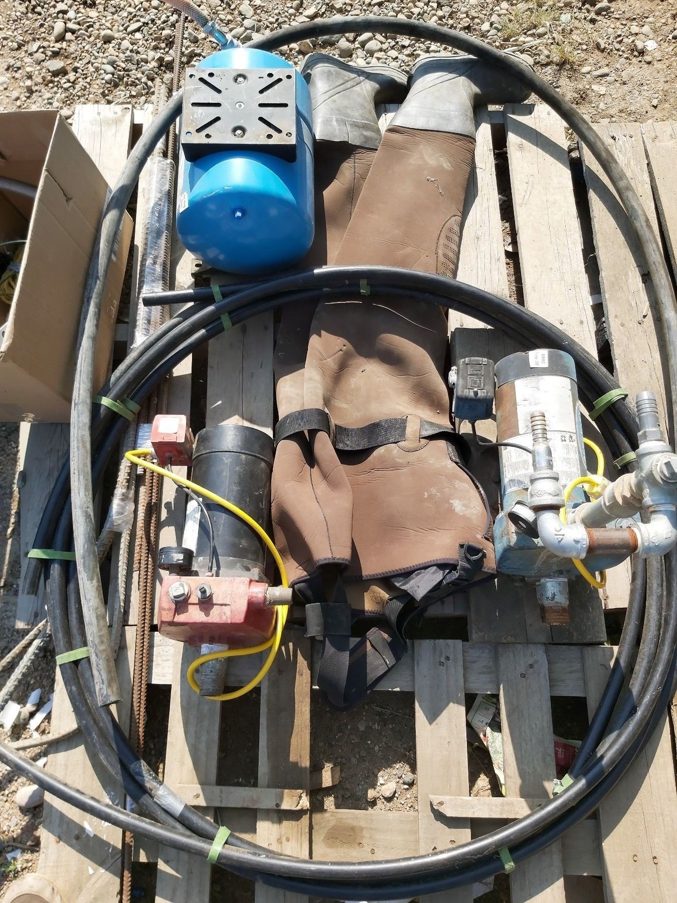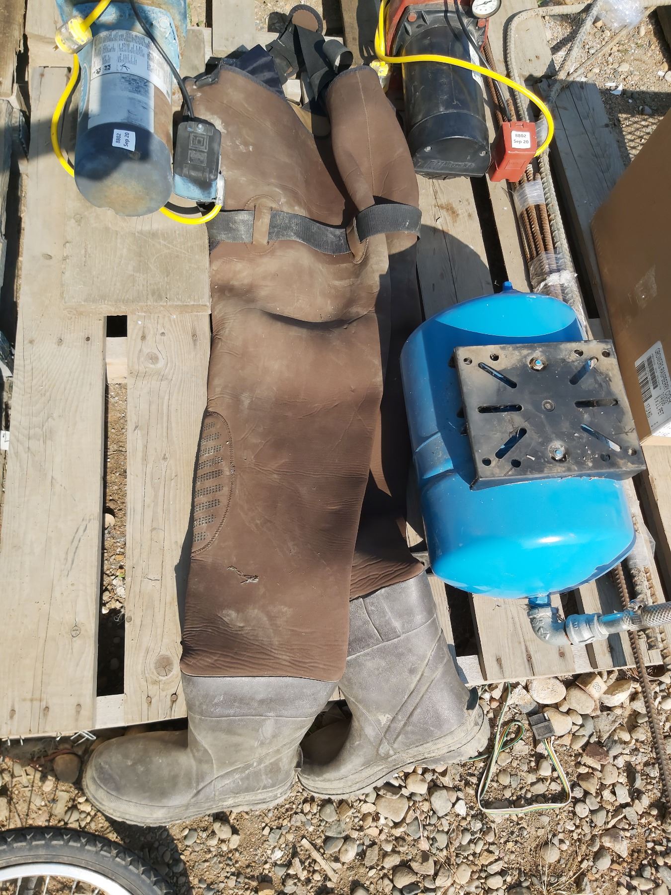 Berkeley (Electric) Irrigation Pump #CA8JRC15, 3450 Phase 1, UL 778, 1/2 HP Motor Magnetek 1/2 HP Jet Pump - 3450 Phase 1, Thermally Protected Motor - Minor Leak (Pump) Gasket Pressure Tank Model AIP 205, 125 PSI. Jet-Rite 2 Back Water Valve - Foot Valve Pressure Gauges 39 1/2" x 3" Diameter Corrugated Filter 2 Shut-off Valves 100' of 1 3/8" Black Poly Hose 100' of 1" Black Poly Hose 50' of 3/4" Black Poly Hose Box of Misc. Sized Hose Clamps, Screws, etc. No. 10 Steel Shank, Outa Bounds Chest Waders No. of Pieces (Various Size & Lengths) Steel Rebar (40 Feet)