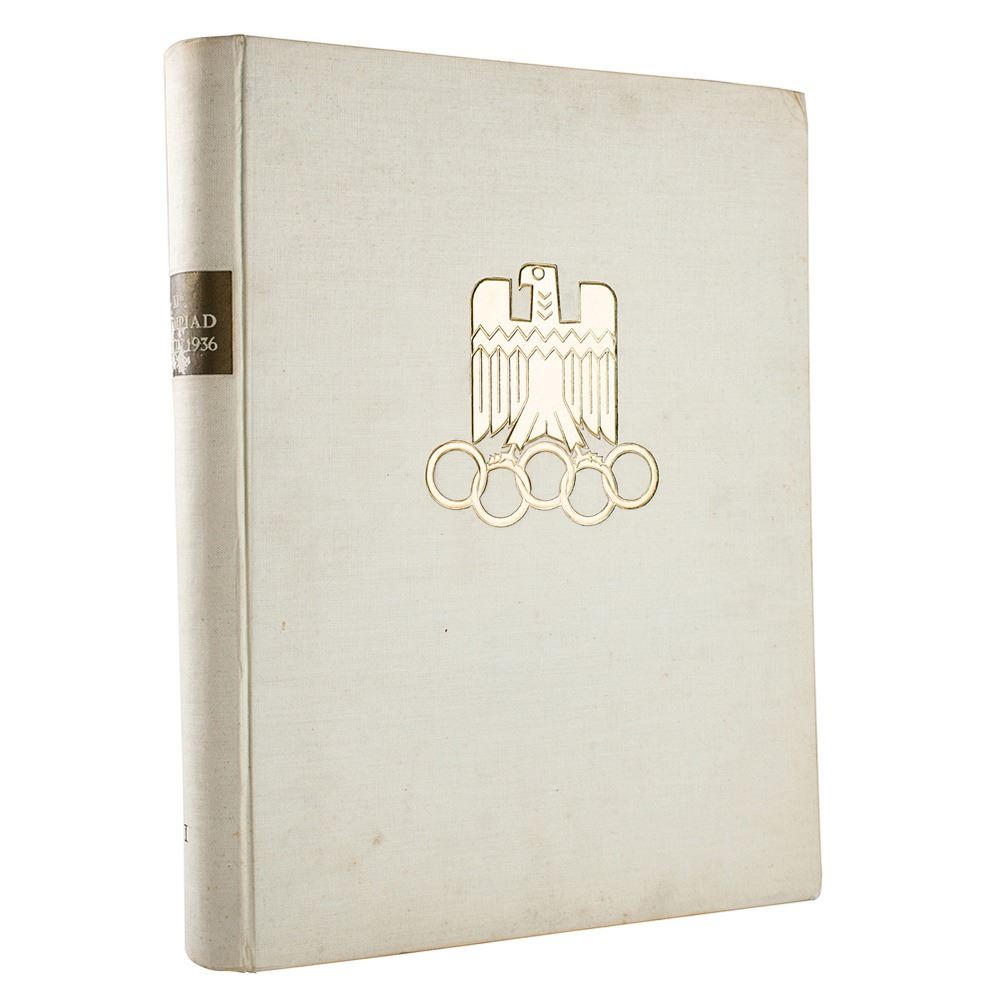 Rare books: The XIth Olympic Games, Berlin, 1936: Official Report, Volumes I and II. Berlin: Wilhelm Limpert, 1937. Hardcover bound in original white cloth with gilt decorations, 9.5 x 12.25, 641 and 589 pages. Book condition: VG-/None, with scuffing and minor foxing to boards, foxing to endpapers, bumped corners, and minor creasing to some interior pages. A very rare two-volume set in the English language.