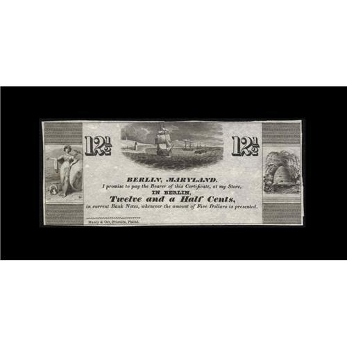 <B>Berlin, MD- Unlisted Issuer</B></I> 12 1/2¢ Shank UNL<BR>This piece comes from an unlisted issuer in the Shank reference. <B>Uncirculated.</B></I>