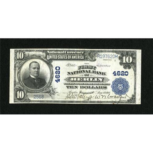 <B>Berlin, WI</B></I> - $10 1902 Plain Back Fr. 628 <B>The First NB</B></I> Ch. # 4620<BR> Perfect penned signatures are noted on this Wisconsin issue. <B>Very Fine.</B></I><BR><BR><b>Shipping:</b> Coins & Currency (<a target="_blank" href="http://www.heritageauctions.com/common/shipping.php">view shipping information</a>)