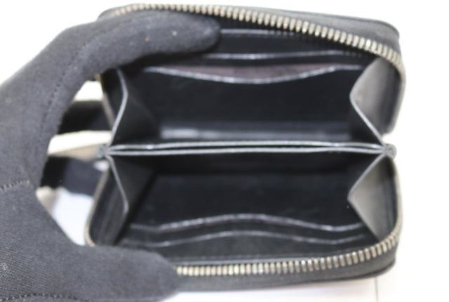 One Berluti Black Wapa Leather Calligraphy Round Compact Wallet. Item is sold AS-IS. All available information is listed in the description and shown in the photo. Berluti Round Compact wallet features black Wapa leather with Berluti's signature calligraphy detail, gold-tone hardware, zip-around closure at top, black leather lining, two internal partitions with two card slots and four pockets. W : 4.3inch H : 3.3inch D: 0.78inch (W: 11cm H: 8.5cm D: 2cm)