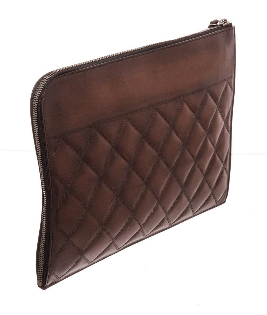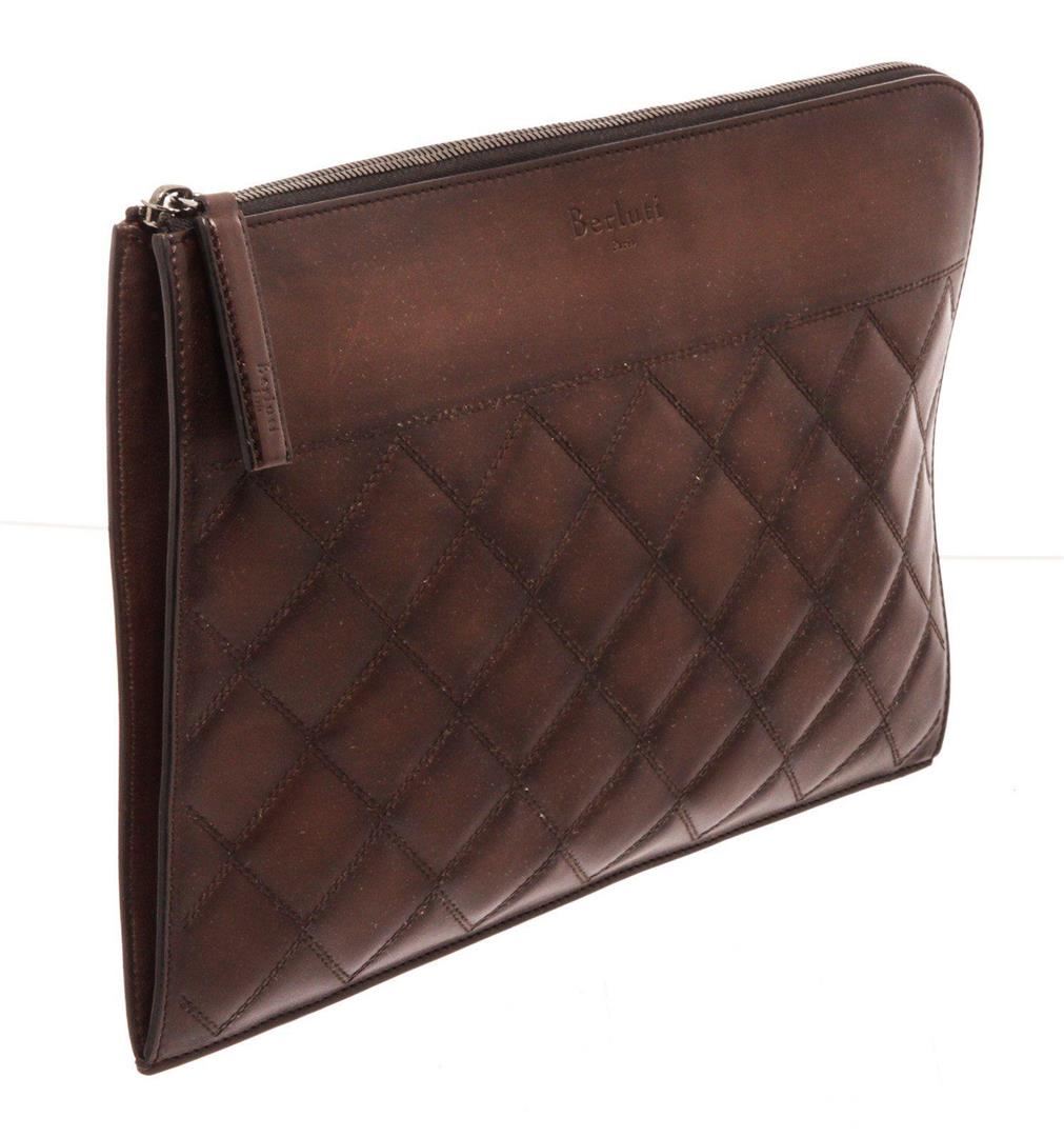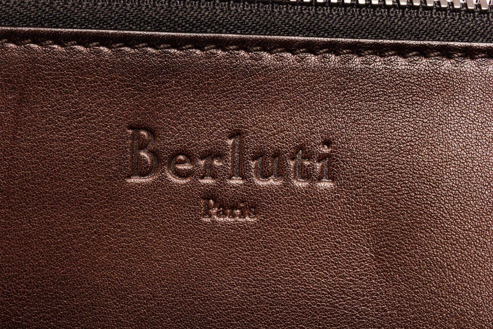 Berluti Brown Leather Off The Road Wallet with material leather, gold-tone hardware, trim tan vachetta leather, interior zip pockets and zipper closure. MEASUREMENTS: Length 3.75 in / 10 cm Width 4.5 in / 11 cm Height 0.25 in / 1 cm Condition: Pre-Owned Good overall, please see photographs for detail.