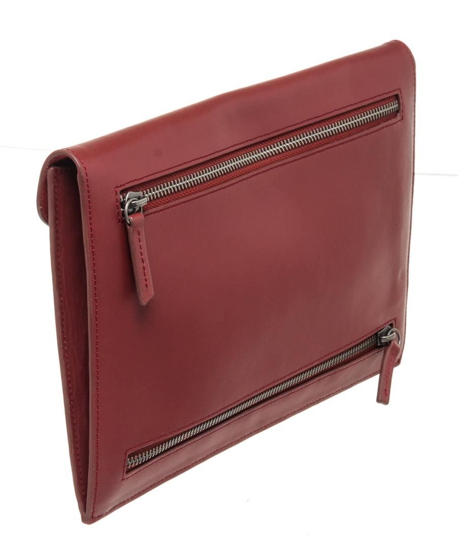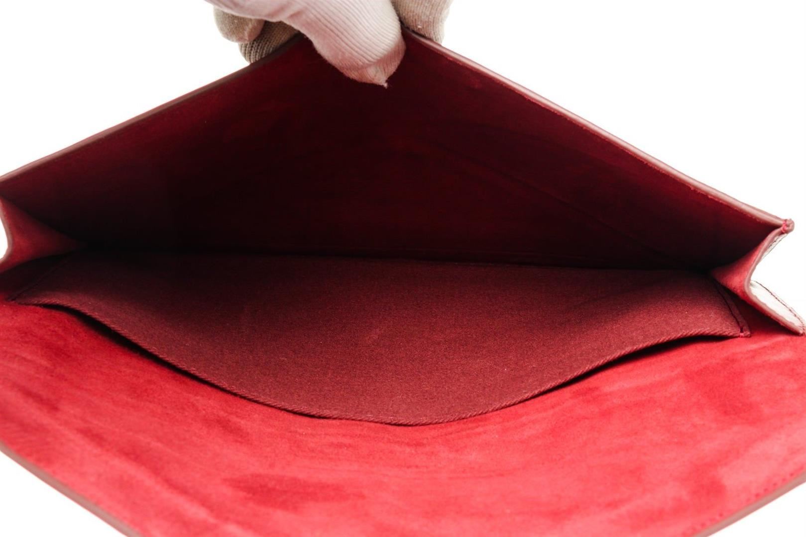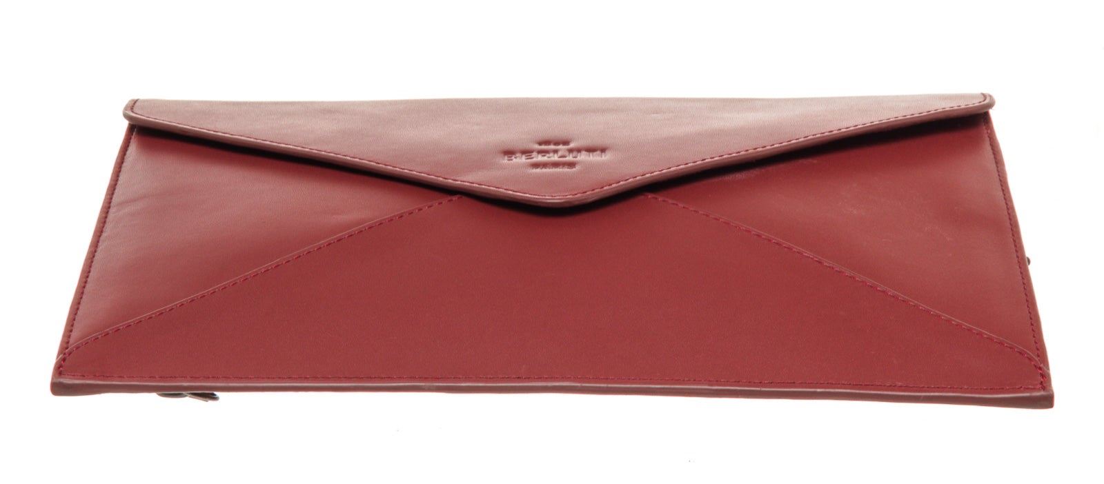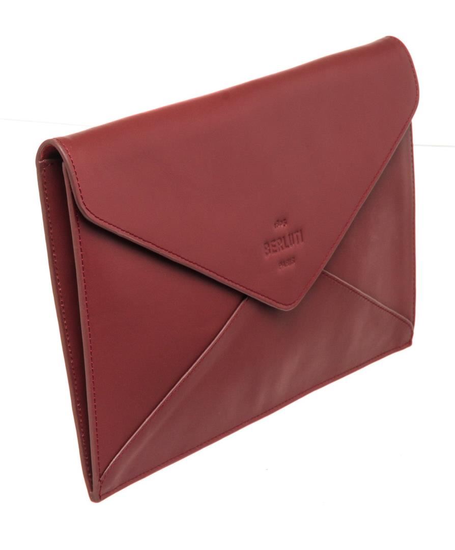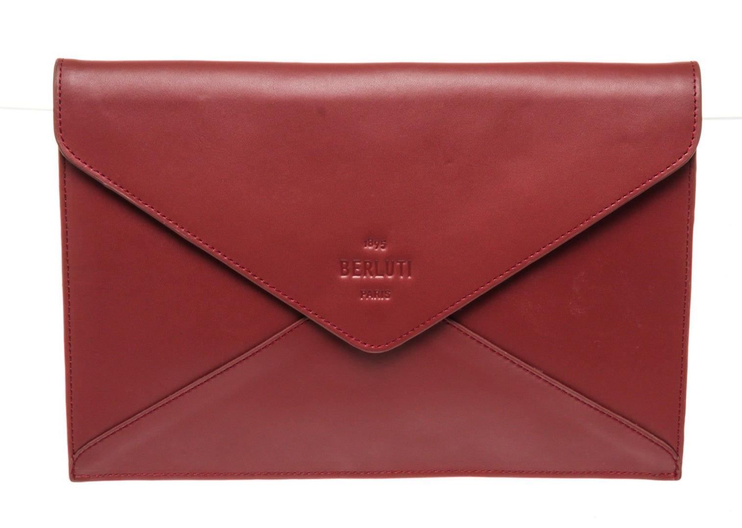 Berlutti Red Leather Letter Case Wallet with leather, gold-tone hardware, trim leather, interior slip pocket and snap closure.