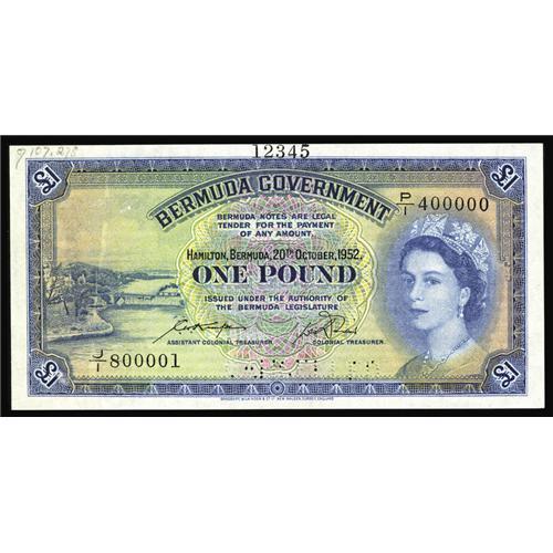 Bermuda $1 1952 Pick 20a SpecimenThis is unlisted in t