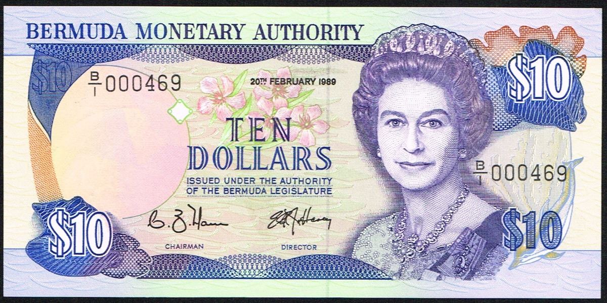 Bermuda, 10 Dollars, 20th Feb 1989, Pick# 36, Bermuda Monetary Authority, SL# B/1-000469, UNC