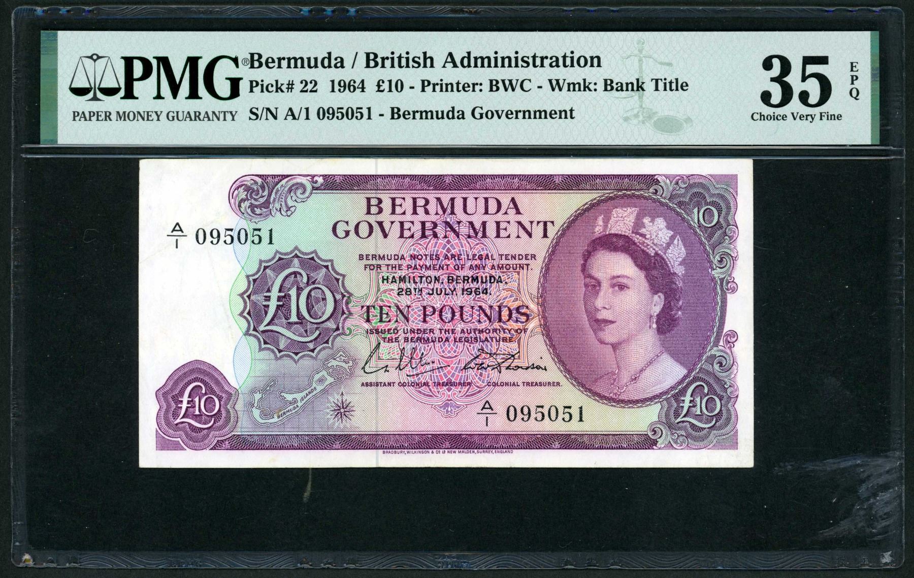 Bermuda 10 Pounds 1964, P-22 PMG Choice Very Fine 35