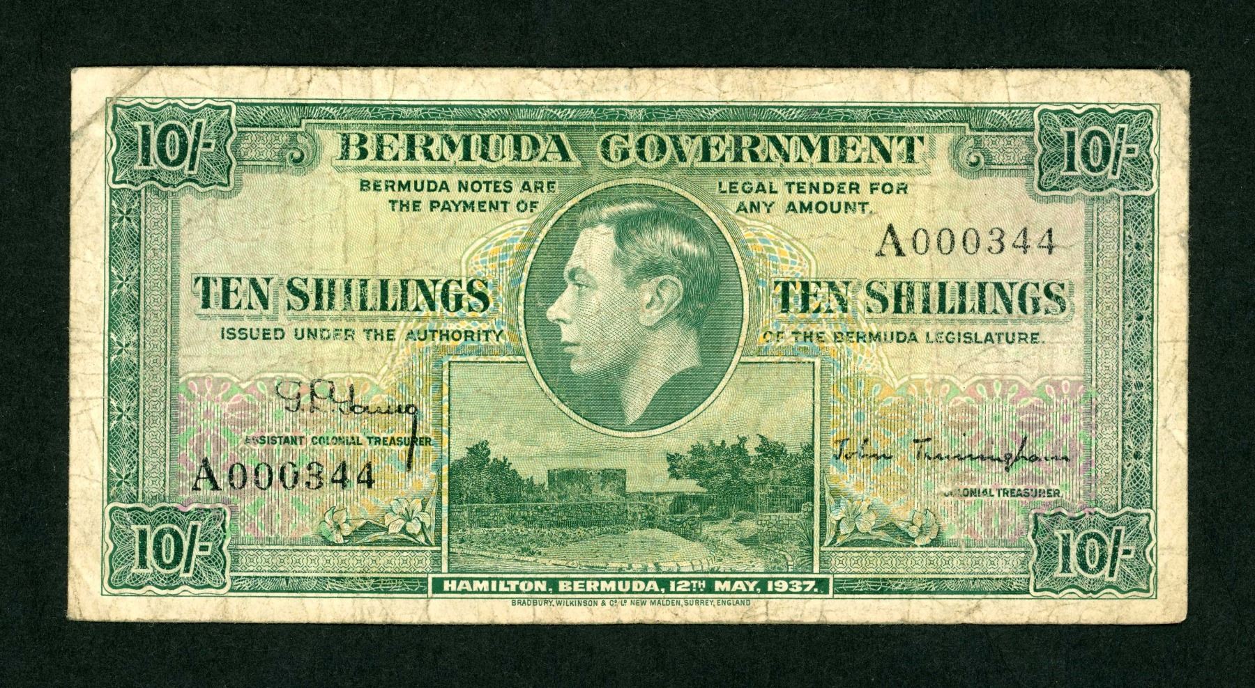 Bermuda 10 Shillings 1937, P-9 Banknote Fine+