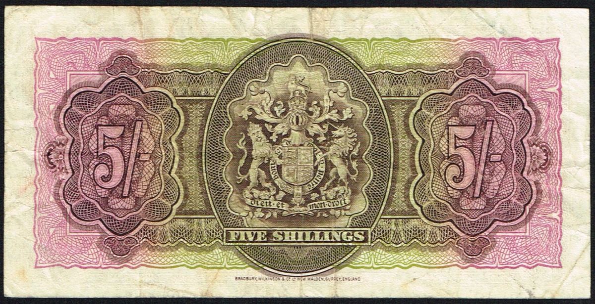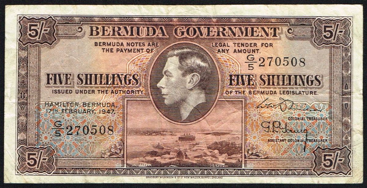 Bermuda, 5 Shillings, 17 Feb 1947, Pick# 14, Bermuda Governmnet, SL# G/5-270508, FINE