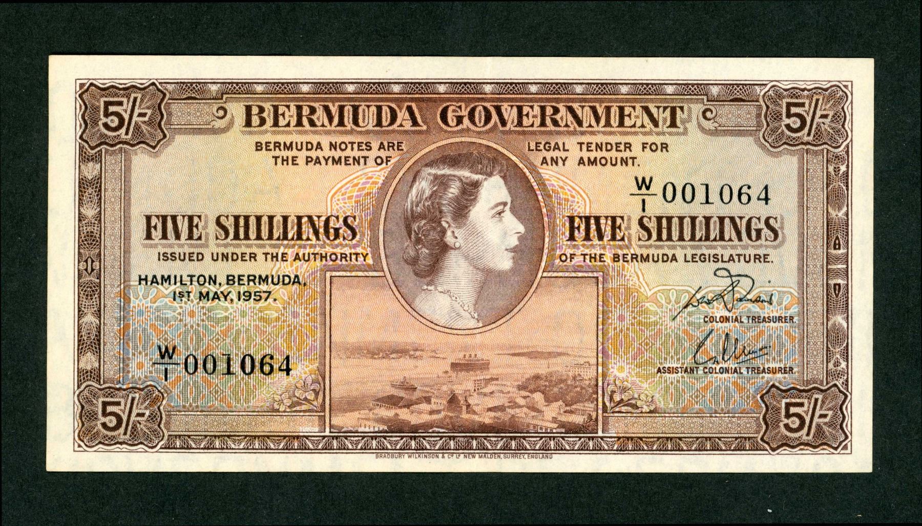 Bermuda 5 Shillings 1957, P-18b Banknote Very Fine