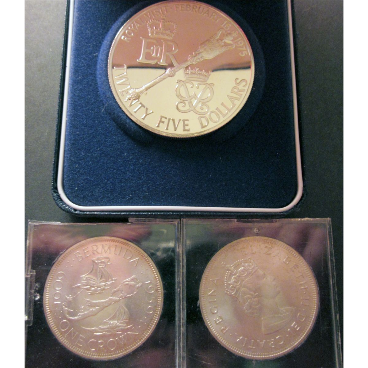 Bermuda; Crown 1959 x 2 in BU condition and $25 Sterling silver 1975 in case of issue with COA. Lot of 3 coins.