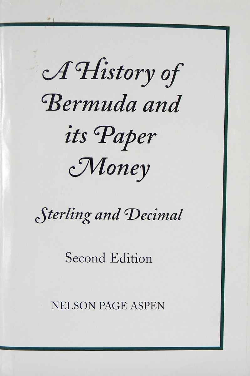 Aspen, Nelson Page. A HISTORY OF BERMUDA AND ITS PAPER MONEY. STERLING AND DECIMAL. N.p., 2000. Second edition. 8vo, original green leatherette, gilt; jacket. 224 pages; illustrated throughout in color. Inscribed by the author. Scuff to jacket, else fine. Inscribed by the author to Wendell Wolka. The latest edition of the standard work.