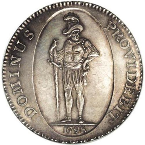 <B>Bern. Taler 1798, </B></I>KM165, Davenport 1760B, MS62 NGC, gray-gold toning, some tiny surface marks.