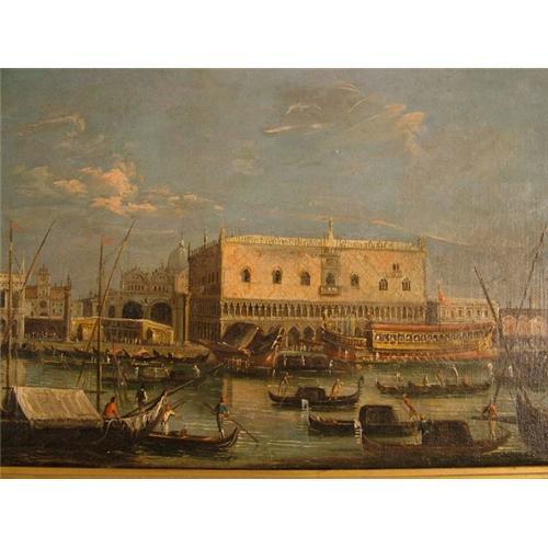 Bernardo Bellotto is one of the most important artists who specialised in townscapes ,his work sometimes has been mistaken for that of his famous uncle Canaletto, this work has been made following the style of Bellotto, it is an original antique painting piece, oil on canvas ,standing 24 inches wide and 16 inches H. measured without the ( antique too) frame, it is unsigned , so we really dont know the artist, has been in the past erroneously attributed to Bellotto, but we dont think so, is a fantastic work.