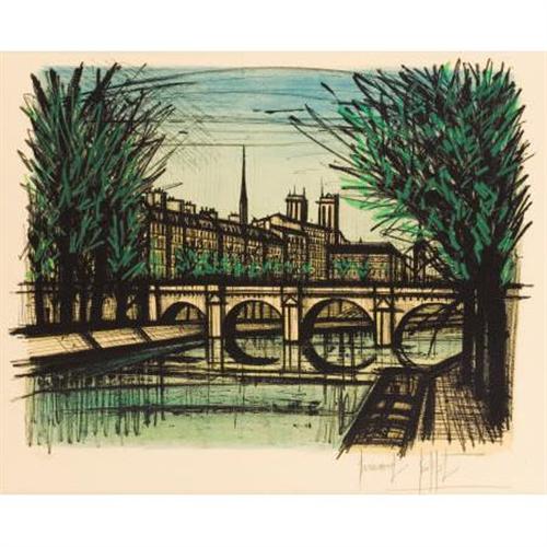 <B>BERNARD BUFFET (French, 1928-1999)</B></I><BR><I>Bridge in Paris</B></I><BR>Color lithograph<BR>18-3/4 x 22-3/4 inches (47.6 x 57.8 cm)<BR>Ed. 81/125<BR>Signed in pencil lower right: <I>Bernard Buffet</B></I><BR> <B>Condition Report:</B> Toning, but otherwise good condition. Matted and framed, not examined out of frame.<BR><BR><b>Shipping:</b> Framed - with Glass, Medium (<a target="_blank" href="http://www.heritageauctions.com/common/shipping.php">view shipping information</a>)