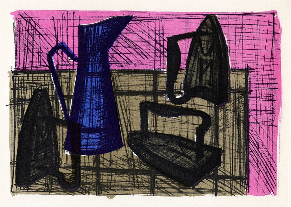 Buffet, Bernard "Still Life with Irons" This color lithograph was pulled in Paris in 1967 by the legendary atelier Mourlot. Double matted and framed in a new moulding. Dimensions: Framed c. 14 x 16 inches. Accompanied by a Certificate of Authenticity.