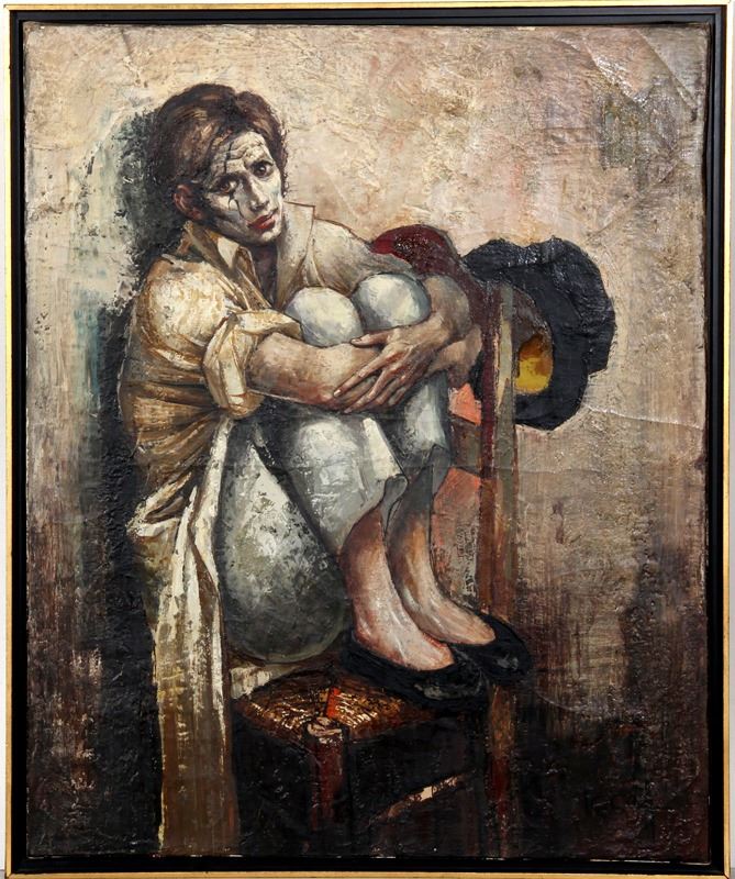 Bernard Locca, Sad Seated Clown, Oil Painting