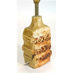 Bernard Rooke stoneware lamp base, incised with an abstract pattern, impressed mark to side, 24cm…