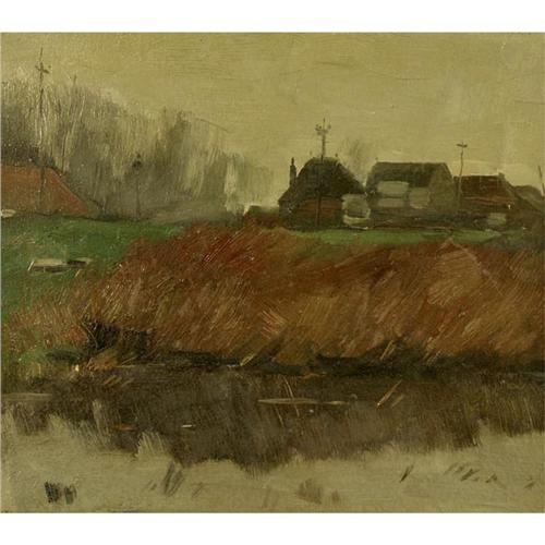 Dutch [1903-1967] HOUSES ON A CANAL oil on canvas 12 x 14 in. (30.5 x 35.6 cm) signed
