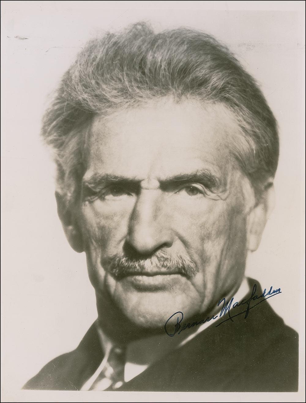 He founded Physical Culture magazine to promote his ideas on self-help, fitness, and healthy living; he built a publishing empire that included the first confessions magazines and the New York Evening Graphic, a sex and scandal-filled tabloid of the 1920s. Vintage glossy 8 x 10 head-and-shoulders photo, signed in fountain pen. In very good condition, with scattered light creases and surface marks, and several noticeable creases to lower left corner.