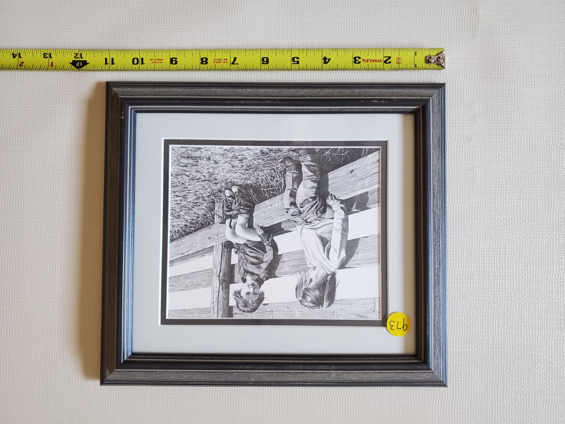 Bernie Brown Print - Potty Break - 9" x 11" Double matted with grey barnwood frame