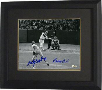 Game 6 of the 1975 World Series would go down as one of the greatest games not only in World Series and post-season history, but baseball history as well. In the bottom of the eighth, Pedro Borbon was on the mound, with Rawly Eastwick warming up in the Reds' bullpen. Borbon gave up a single to Fred Lynn, and then walked Rico Petrocelli. Eastwick was brought in to pitch, and proceeded to strike out Dwight Evans and retire Rick Burleson on a line-out to left. Eastwick looked on his way out of the inning. Bernie Carbo, a former first-round pick of the Reds, who had a pinch-hit home run in Game 3, was called on to bat for Roger Moret. Carbo looked hopelessly overmatched by Eastwick, and on a 2–2 pitch, fouled off a pitch on a swing that was described as having "all the athletic grace of a suburbanite raking leaves." On the next pitch, however, Carbo tied the game with a three-run home run just to the left of dead center field. Rawly Eastwick and Bernie Carbo have hand signed this 8x10 Photo from the 75 World Series. Certificate of Authenticity from Athlon Sports. Custom Black Mat and Premium Black Frame as shown.