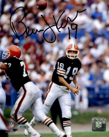 In 1990 and 1991, Bernie Kosar set a league record by throwing 308 consecutive passes without an interception (a record since surpassed by New England Patriots quarterback Tom Brady on December 26, 2010 against the Buffalo Bills). 1987 was Kosar's finest year, statistically. In the strike-shortened season, he completed 62 percent of his passes for 3,033 yards and 22 touchdowns and led the AFC in quarterback rating. Bernie Kosar has hand autographed this Cleveland Browns 8x10 Photo. Steiner Sports Hologram and Certificate of Authenticity.