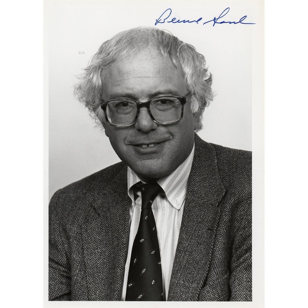 Youthful glossy 5 x 7 photo of Bernie Sanders, neatly signed in blue felt tip by the Vermont icon. In very fine condition.